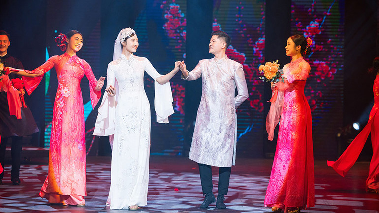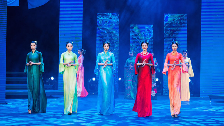 Chương trình được phối hợp giữa ca múa, nhạc kịch và công nghệ âm thanh, ánh sáng, màn hình 3D, do ê-kíp đạo diễn Quang Tú và Bảo Ngọc thực hiện. Chương trình gồm 3 phần: “Tự hào áo dài Việt”, “Tâm hồn áo dài Việt” và “Tinh hoa áo dài Việt”. Đặc biệt, ngoài phần trình diễn của các người mẫu, còn có sự tham gia của các phu nhân đại sứ quốc tế tại Hà Nội trong tà áo dài Việt Nam.