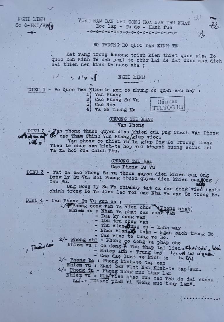 Chúng tôi còn được chứng kiến thêm một bất ngờ đến ngỡ ngàng khác khi được xem văn bản một nghị định khác của Bộ Kinh tế mang số hiệu 75-BKT/ND do Bộ trưởng Phan Anh ký ngày 8/3/1949 lần đầu tiên quy định về công tác báo chí của Bộ Kinh tế với việc thành lập Phòng Báo chí thuộc Văn phòng Bộ.
