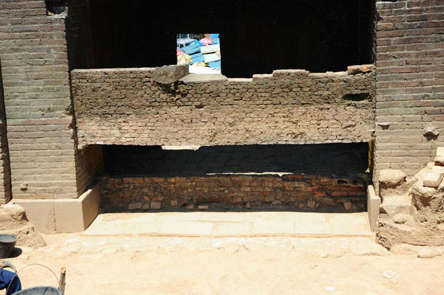 Nhiều lớp đá xuất lộ tại hố cổng Huế phía bắc.