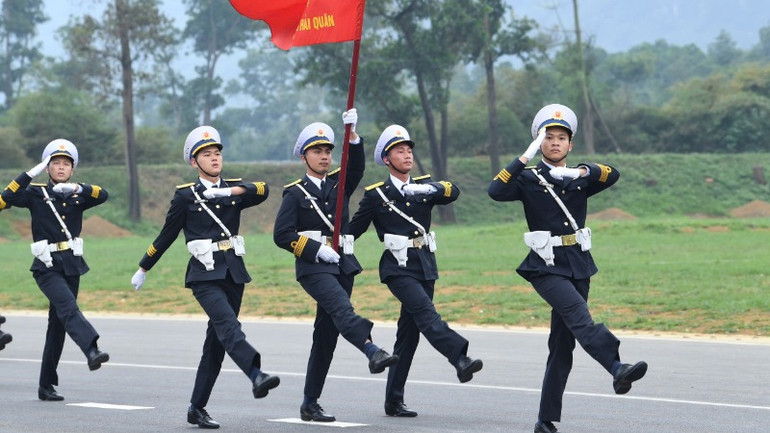 Một số hình ảnh về buổi hợp luyện chuẩn bị cho diễu binh, diễu hành kỷ niệm 50 năm giải phóng miền nam, thống nhất đất nước của các khối Hải quân: