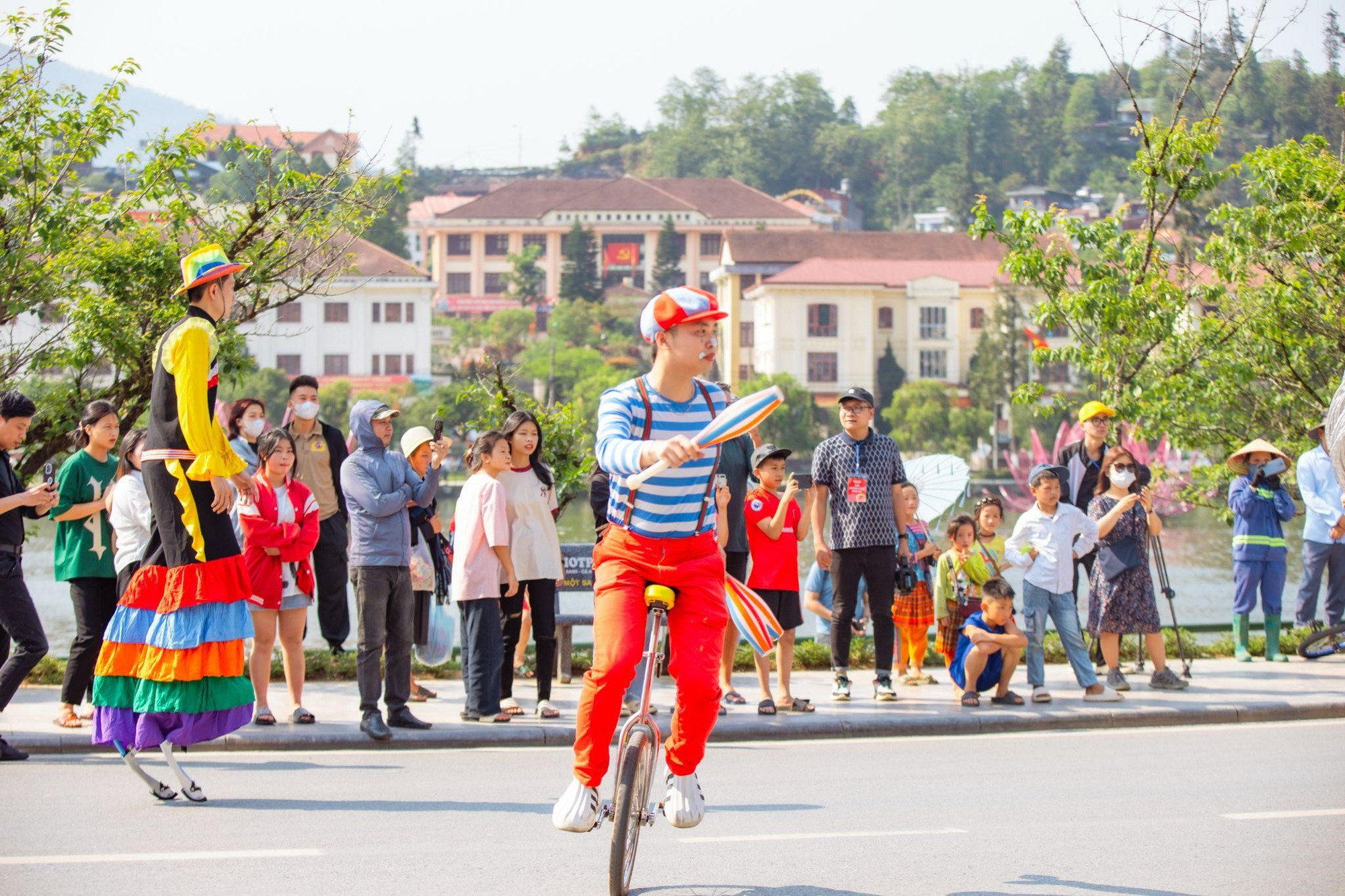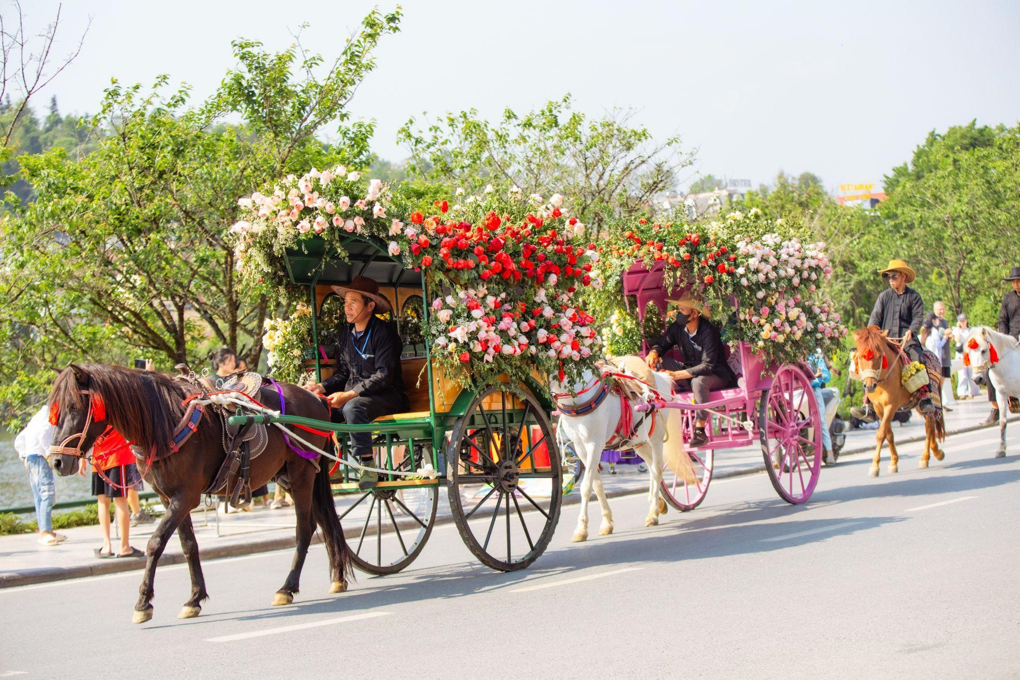 Những chiếc xe ngựa hay xe điện cổ được trang trí bởi hàng trăm đóa hồng đủ sắc màu rực rỡ cùng sự tham gia của hàng trăm diễn viên bản địa trong trang phục dân tộc đặc trưng của Sa Pa đã khuấy động những nẻo đường trung tâm của Sa Pa. Tất cả đã tạo nên không khí tưng bừng, rộn rã như một ngày hội lớn tại thị trấn trong mây.