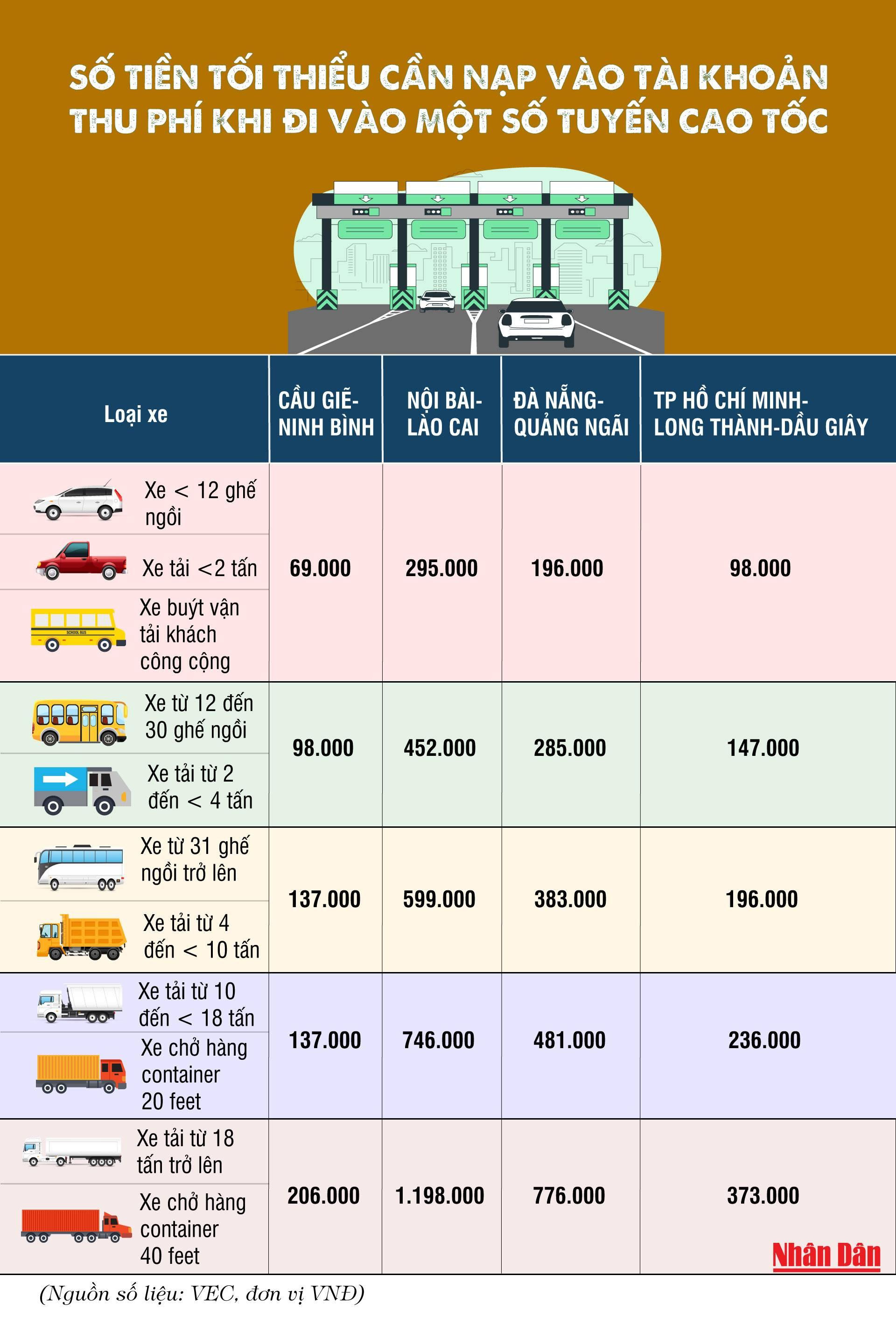 Lý giải về việc yêu cầu chủ phương tiện/người tham gia giao thông phải nạp đủ tiền để thực hiện 1 giao dịch (tương ứng với số tiền thanh toán cho chiều dài cả chặng), đại diện VEC cho biết: Một số khách hàng có thể dự định ban đầu chỉ đi một chặng ngắn của tuyến cao tốc nhưng nếu trường hợp khách hàng đi vào lại có việc đi hết tuyến thì lúc đó đầu ra phải dừng lại để xử lý sự cố, tức là tiền không đủ trong tài khoản để thanh toán sẽ gây nên tình trạng kẹt xe ở trạm thu phí. Do đó, chúng tôi đề nghị nạp đủ một chặng để sử dụng, nếu khách hàng đi không đủ chặng thì tiền vẫn còn trong tài khoản.