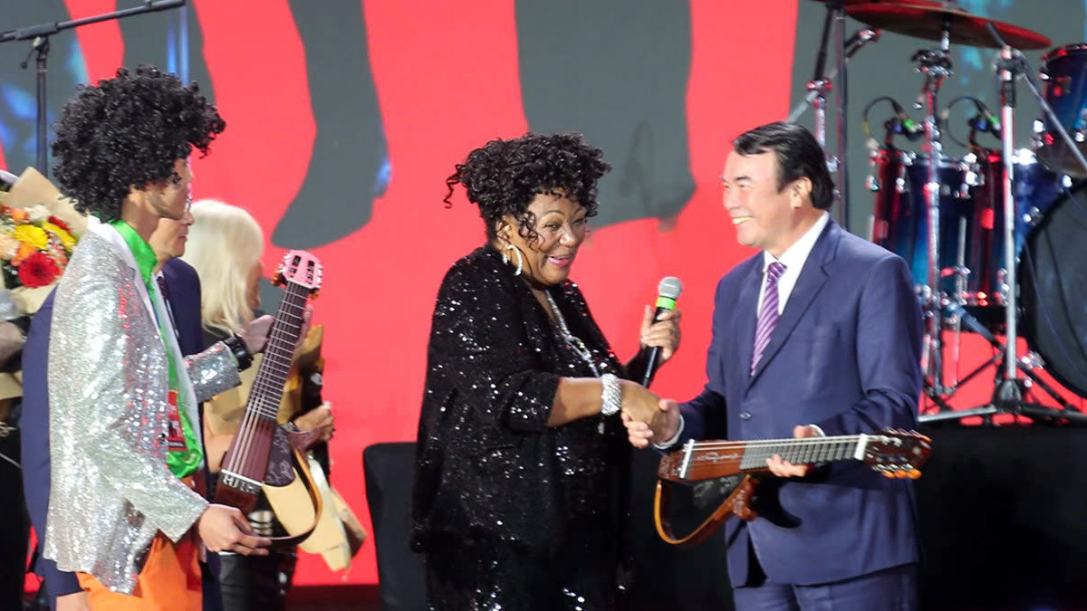 | Tại sự kiện “Dalat Spring Concert” năm 2024, đại diện những nghệ sĩ tham gia đêm nhạc, nghệ sĩ Liz Mitchell trao 2 cây đàn guitar có chữ ký của các nghệ sĩ tham gia sự kiện tặng lãnh đạo tỉnh Lâm Đồng và thành phố Đà Lạt. |
