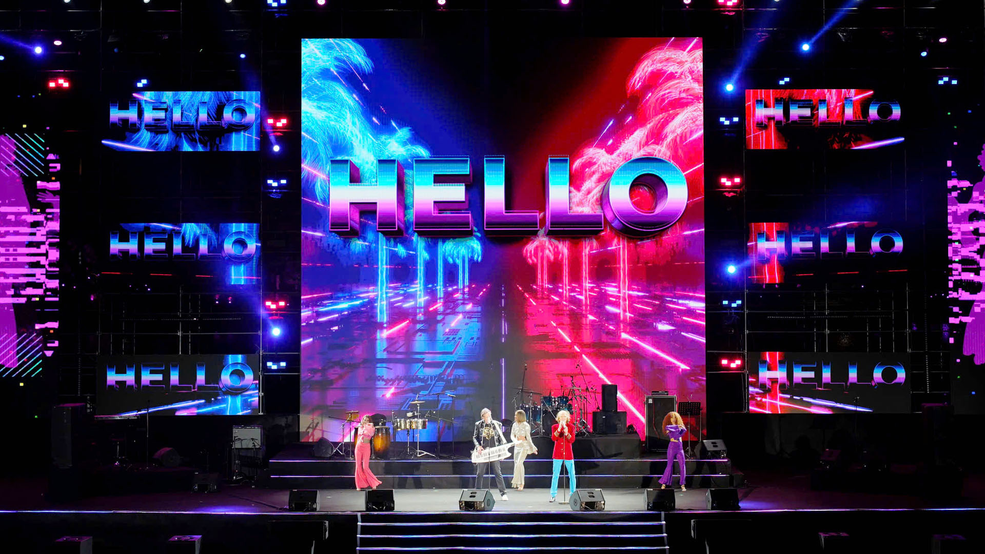 | Joy Band mở đầu phần trình diễn của mình bằng ca khúc như gửi lời chào nồng nhiệt đến khán giả xứ ngàn hoa “Hello”. |