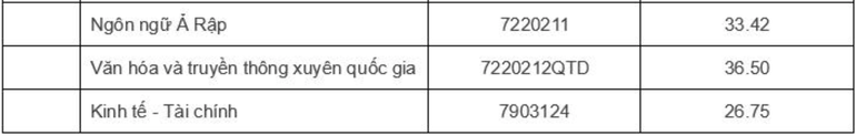 Điểm chuẩn cụ thể từng ngành như sau: