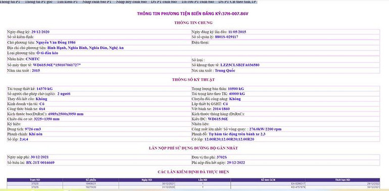 Xe đầu kéo container mang BKS 37H-007.86 được Sở Giao thông vận tải Hưng Yên cấp phù hiệu xe đầu kéo cho HTX thương mại Ánh Dương-chi nhánh Hưng Yên. Thời điểm cuối cùng Tổng cục nhận được dữ liệu của phương tiện là 5 giờ 48 phút 20 giây, phương tiện có tốc độ 59km/h, thời điểm trước đó (lúc 5 giờ 48 phút 10 giây, phương tiện có tốc độ 59km/giờ). Phương tiện chưa truyền dữ liệu camera về hệ thống của Tổng cục.