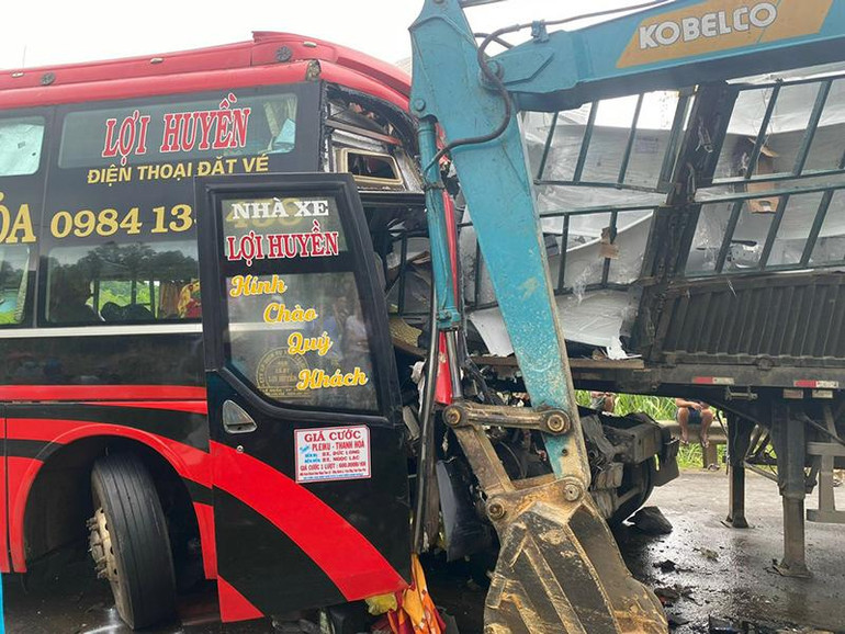 Theo thông tin ban đầu từ Ban An toàn giao thông tỉnh Thanh Hóa, xe ô-tô khách mang BKS 81B-009.65 đi hướng Nghệ An-Hà Nội đến địa điểm trên đã đâm va với xe đầu kéo container mang BKS 37H-007.86 và sơ-mi rơ-moóc mang BKS 37R-039.72 lưu thông theo chiều ngược lại. Tại hiện trường, xác định có 2 người chết, 4 người bị thương (chưa xác định được danh tính).