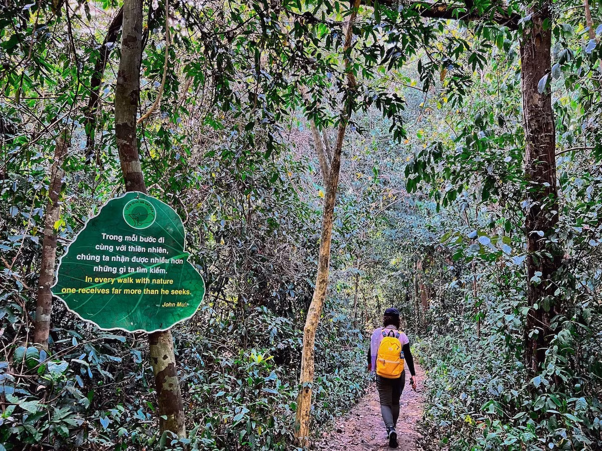 Nhiều nơi trong rừng, Ban quản lý đặt những tấm biển ghi danh ngôn về tình yêu thiên nhiên, ý thức bảo vệ rừng.