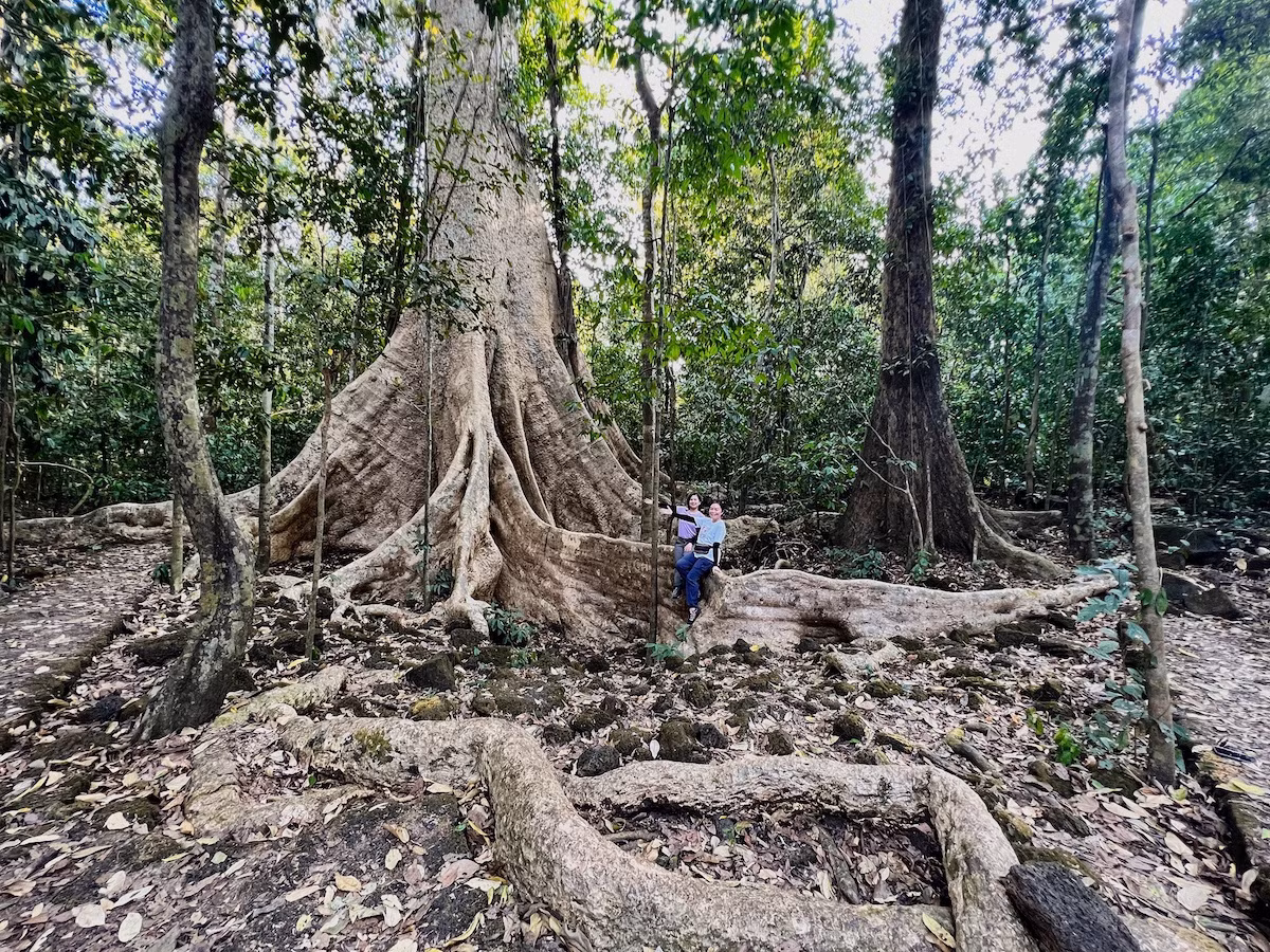 Cây tung cổ thụ hơn 400 năm tuổi với chiều cao hơn 30m, bộ rễ dài hơn 20m, ước chừng 20 người đứng quanh mới bao hết chu vi. Chỉ cách cổng Vườn quốc gia khoảng 800m, đây là điểm check-in của hầu hết du khách đến với Nam Cát Tiên.