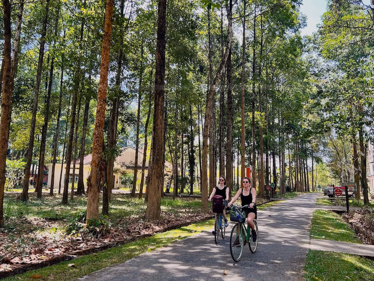 Để khám phá rừng Nam Cát Tiên, nhiều du khách chọn thuê xe đạp kết hợp với đi bộ.