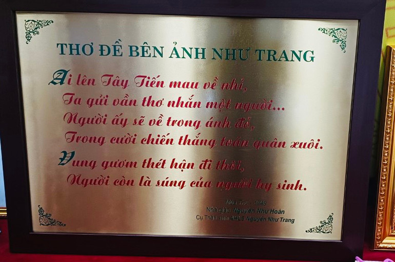 Bài thơ này được khắc ép trên nền đồng và hôm nay gia đình trao tặng cho Bảo tàng tỉnh Hòa Bình lưu giữ”.