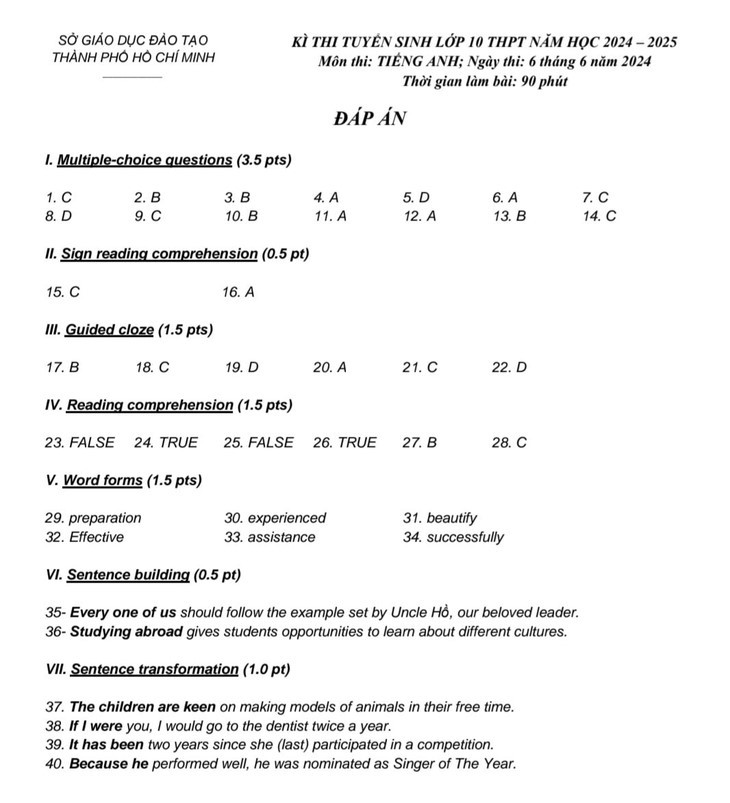 Dự kiến, kết quả thi sẽ được Sở Giáo dục và Đào tạo Thành phố Hồ Chí Minh công bố ngày 20/6.