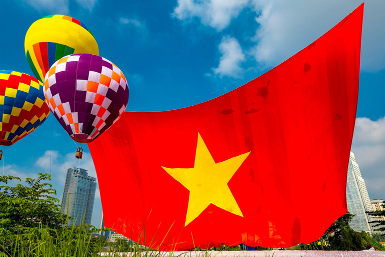Nằm trong khuôn khổ Lễ hội "Tết Độc lập", sáng 2/9, tại khu vực bến Bạch Đằng, quận 1 và khu vực 2 bên bờ sông Sài Gòn, thành phố Thủ Đức, Thành phố Hồ Chí Minh tổ chức thả khinh khí cầu kéo đại kỳ mừng lễ Quốc khánh 2/9.