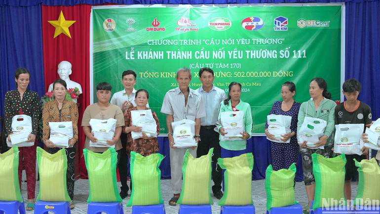 Trong khuôn khổ chương trình “Cầu nối yêu thương”, trước đó, vào chiều 17/8, chính quyền xã Lợi An (huyện Trần Văn Thời, tỉnh Cà Mau) tiếp nhận bàn giao cầu nông thôn nối đôi bờ kênh Cô Ba của ấp Tân Thành với xã Phú Hưng (huyện Cái Nước, tỉnh Cà Mau).