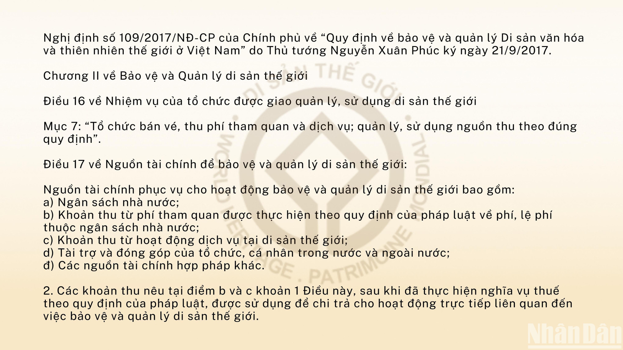 Trao đổi với phóng viên Báo Nhân Dân sáng 8/4, ông Nguyễn Văn Sơn, Chủ tịch UBND thành phố Hội An khẳng định, việc bán vé tham quan Di sản UNESCO của thành phố Hội An từ năm 1995 đến nay phù hợp với các quy định của chính phủ và xu thế chung của thế giới trong việc bảo tồn di sản UNESCO.