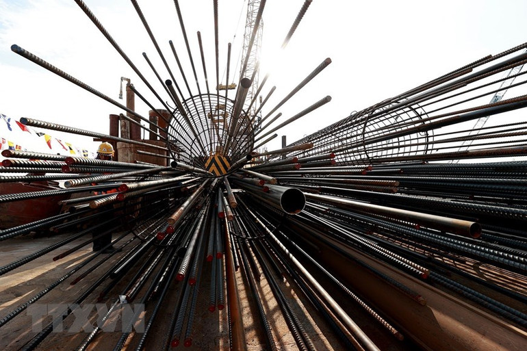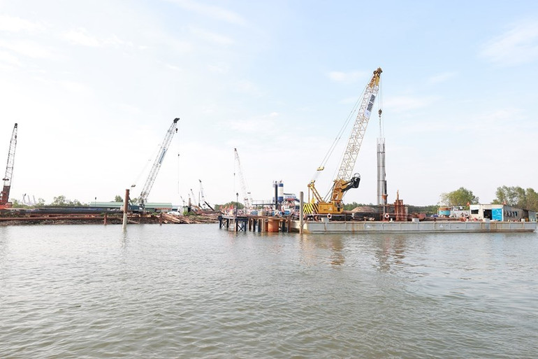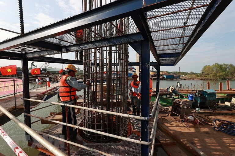 Dự án cầu Nhơn Trạch đang triển khai thi công trên sông Đồng Nai. (Ảnh: TTXVN)