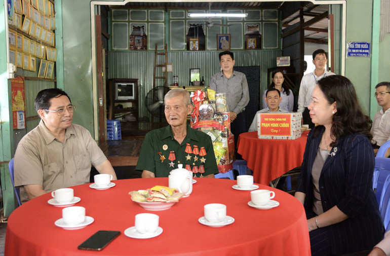 * Cùng ngày, Thủ tướng Phạm Minh Chính, Phó Chủ tịch nước Võ Thị Ánh Xuân đã đến thăm, động viên gia đình thương binh Huỳnh Quang Vinh tại xã Vĩnh Tế, thành phố Châu Đốc.