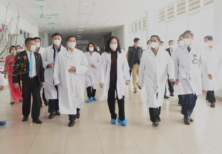 Phát biểu ý kiến tại buổi gặp gỡ, chúc Tết cán bộ, y bác sĩ, nhân viên y tế của Bệnh viện, Thủ tướng Phạm Minh Chính bày tỏ xúc động được đến thăm Bệnh viện, chứng kiến các y, bác sĩ vẫn làm việc tích cực để chăm sóc sức khỏe, bảo vệ tính mạng của người dân những ngày Tết này; đặc biệt rất nhiều nữ thầy thuốc, nhân viên y tế vẫn gác lại công việc gia đình để làm việc.