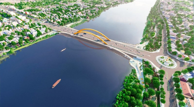 | Phối cảnh dự án đường Nguyễn Hoàng và cầu vượt qua sông Hương (thành phố Huế). |