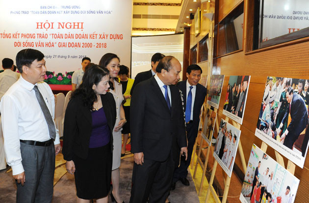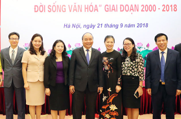 Phát biểu ý kiến tại hội nghị, Thủ tướng Nguyễn Xuân Phúc nhấn mạnh, xây dựng đời sống văn hóa là nhu cầu, nguyện vọng của đông đảo các tầng lớp nhân dân. Thủ tướng cho rằng với sự quan tâm lãnh đạo, chỉ đạo, vào cuộc của cả hệ thống chính trị, 18 năm qua, phong trào đã thực sự trở thành cuộc vận động văn hóa lớn, nhận được sự hưởng ứng và tham gia đông đảo của các tầng lớp nhân dân. Đây là sợi dây gắn kết các phong trào thi đua, các cuộc vận động trên toàn quốc. Phong trào văn hoá ở huyện nông thôn mới rất nhiều ấn tượng. Gia đình văn hóa với truyền thống tốt đẹp “ông bà, cha mẹ mẫu mực, con cháu thảo hiền” được chú trọng, đã phát huy những yếu tố tích cực, góp phần to lớn trong việc duy trì và bảo vệ các tế bào của xã hội lành mạnh.