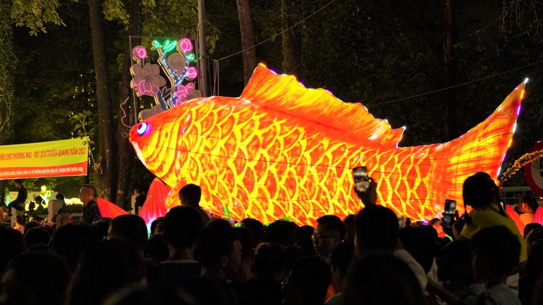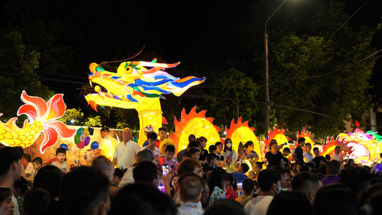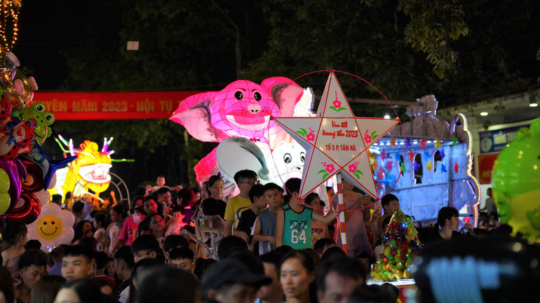 Cứ độ 7-8 giờ tối, những chiếc đèn khổng lồ của những tổ hoàn thành sớm lại được đặt trên xe và bon bon trên đường. Tiếng nhạc, tiếng hô của trẻ em cũng thôi thúc các tổ, xóm khác nhanh tay hoàn thiện mô hình để đưa thành quả của mình lên sàn diễn.