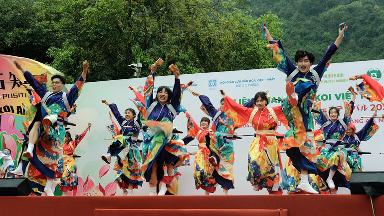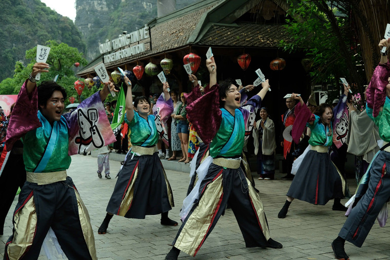 | Các vũ công trình diễn Yosakoi tại danh thắng Tràng An. |
