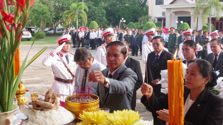 Lãnh đạo, chính quyền tỉnh Salavan dâng hương, dâng hoa các Anh hùng liệt sĩ.
