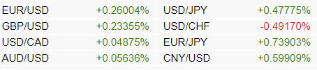 Tỷ lệ thay đổi tương quan giữa một số loại tiền tệ trong 24 giờ qua (theo x-rates.com):