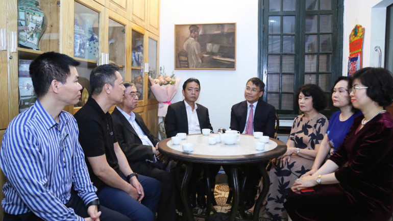 Đoàn Ủy ban Quốc gia UNESCO Việt Nam đến chúc mừng gia đình cố nhạc sĩ Hoàng Vân. (Ảnh: Ủy ban cung cấp)