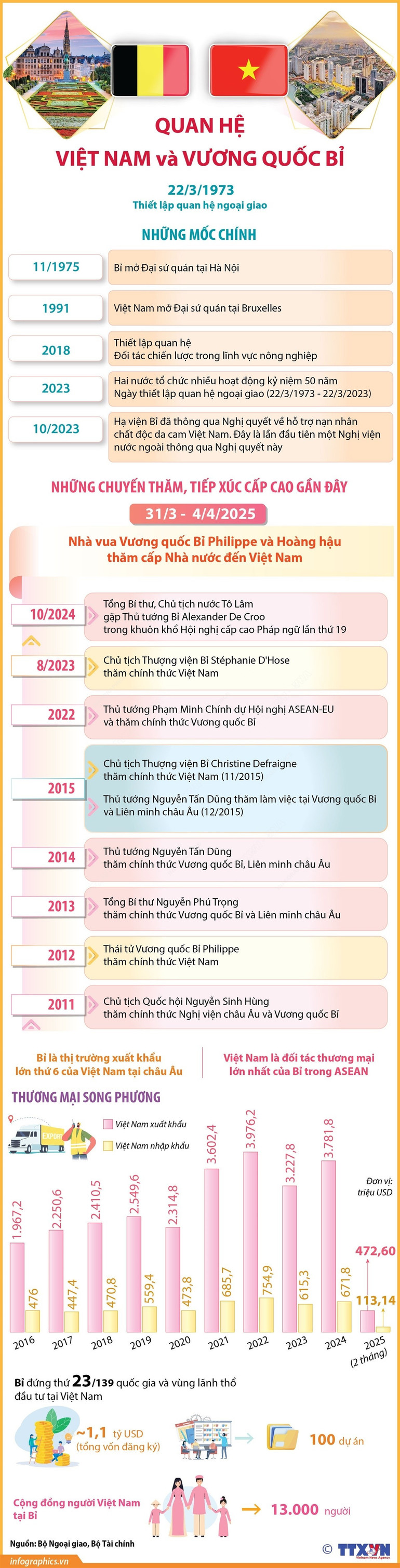 Nhận lời mời của Chủ tịch nước Cộng hòa xã hội chủ nghĩa Việt Nam Lương Cường và Phu nhân, Nhà vua Vương quốc Bỉ Philippe và Hoàng hậu thăm cấp Nhà nước đến Việt Nam từ ngày 31/3 đến 4/4.