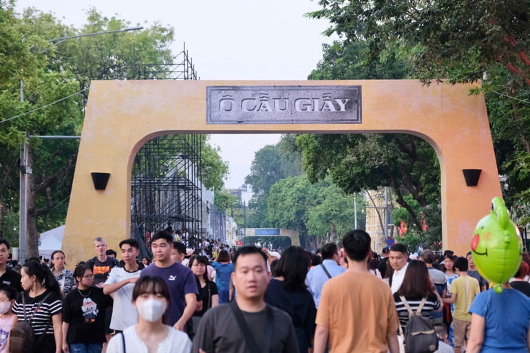 Hình ảnh 5 cửa ô nổi tiếng của kinh thành Thăng Long: Ô Quan Chưởng, ô Cầu Giấy, ô Cầu Dền, ô Đống Mác và ô Chợ Dừa đã được tái hiện, thể hiện rõ tính biểu tượng của Thủ đô ngàn năm văn hiến.