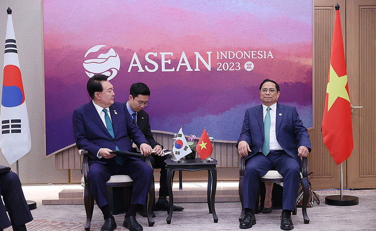Tại buổi hội kiến, Thủ tướng Chính phủ Phạm Minh Chính bày tỏ vui mừng trước những bước phát triển nhanh chóng, thực chất của quan hệ Việt Nam-Hàn Quốc kể từ khi hai nước nâng cấp quan hệ lên Đối tác chiến lược toàn diện (tháng 12/2022); một lần nữa chúc mừng thành công của chuyến thăm cấp Nhà nước của Tổng thống Yoon Suk Yeol đến Việt Nam tháng 6 vừa qua, để lại nhiều ấn tượng sâu sắc với lãnh đạo và người dân Việt Nam.