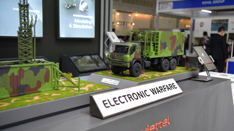 Triển lãm năm nay lần đầu tiên có sự góp mặt của một doanh nghiệp quốc phòng Việt Nam là Tập đoàn Công nghiệp viễn thông quân đội Viettel.