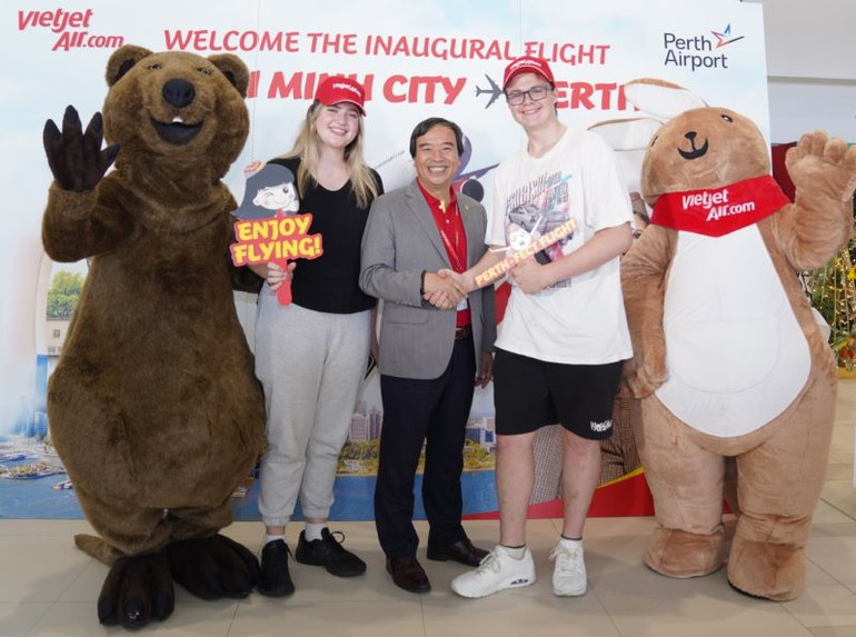Phó Thủ hiến bang Tây Australia, Rita Saffioti, Bộ trưởng Du lịch bang Nam Australia, Zoe Bettison, lãnh đạo sân bay Perth và sân bay Adelaide đã cùng chúc mừng đường bay mới của Vietjet.