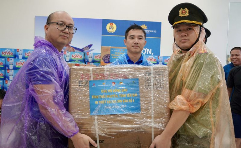 Bên cạnh đó, sau khi thông qua Ủy ban Trung ương Mặt trận Tổ quốc Việt Nam để có những hỗ trợ bước đầu, ngày 11/9 vừa qua, Đoàn Thanh niên Vietnam Airlines đã phối hợp với Đoàn Thanh niên Bộ Công an, Tập đoàn Dầu khí Quốc gia Việt Nam và Ngân hàng Vietcombank tổ chức hoạt động ý nghĩa, mang theo tấm lòng và sự sẻ chia đến với bà con vùng lũ Thái Nguyên, Yên Bái; tổng giá trị hỗ trợ lên đến gần 500 triệu đồng.
