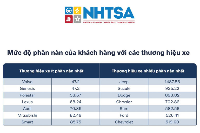 Trong tổng cộng 34 thương hiệu xe được nhắc tới trên 833,761 lượt khiếu nại gửi về Cơ quan An toàn giao thông quốc gia Mỹ (NHTSA), Volvo là cái tên ít được nhắc đến nhất với chỉ trung bình 47,2 phàn nàn trên mỗi mẫu xe khảo sát. Chỉ duy nhất thương hiệu Genesis đạt được sự hài lòng tương tự như Volvo từ phía khách hàng, nhưng trên lượng xe khảo sát thấp hơn đáng kể với chỉ 15 mẫu.