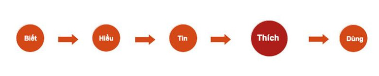 Đây là một quy trình cơ bản của những công ty truyền thông bán hàng trước kia hay làm: Thí dụ như trước kia một chiến dịch bán hàng của chúng tôi phải triển khai từng bước để tạo nhận diện, tạo ấn tượng, tạo hiểu biết… rồi mới bán hàng. Nó như biểu đồ này với từng bước Biết-Hiểu-Tin-Thích-Dùng.