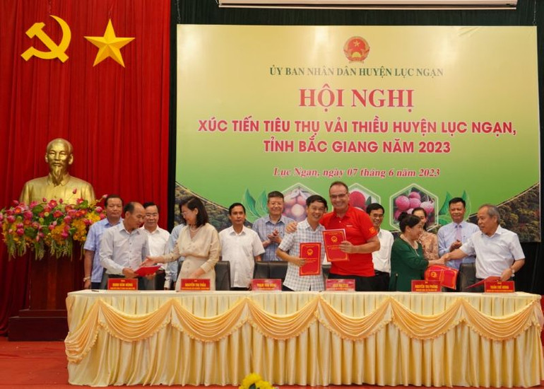 Tại hội nghị, đại diện Tập đoàn Central Retail đã chia sẻ những kinh nghiệm tiêu thụ vải thiều chính vụ; ký biên bản thỏa thuận hợp tác tiêu thụ vải thiều với các hợp tác xã ở huyện Lục Ngạn và phối hợp thực hiện nghi thức cắt băng xuất hành đoàn xe vận chuyển vải thiều tiêu thụ tại hệ thống của Central Retail, bao gồm chuỗi siêu thị: GO!, Big C, Top Market và xuất khẩu sang Thái Lan.
