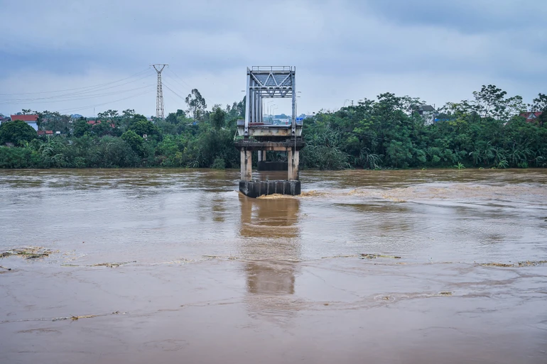 Đến sáng nay (10/9), tại cầu Phong Châu, nước sông vẫn chảy rất xiết khiến cho công tác bắc cầu phao, tìm kiếm trục vớt vẫn chưa thể tiến hành.