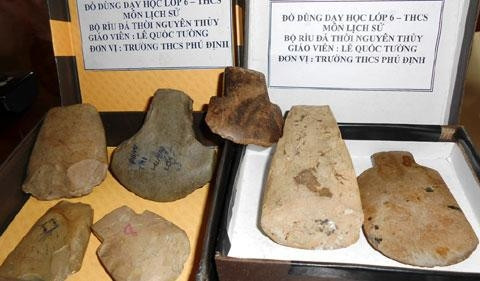 Bộ rìu đá thời nguyên thủy- bộ đồ dùng dạy học của thầy giáo Lê Quốc Tường.