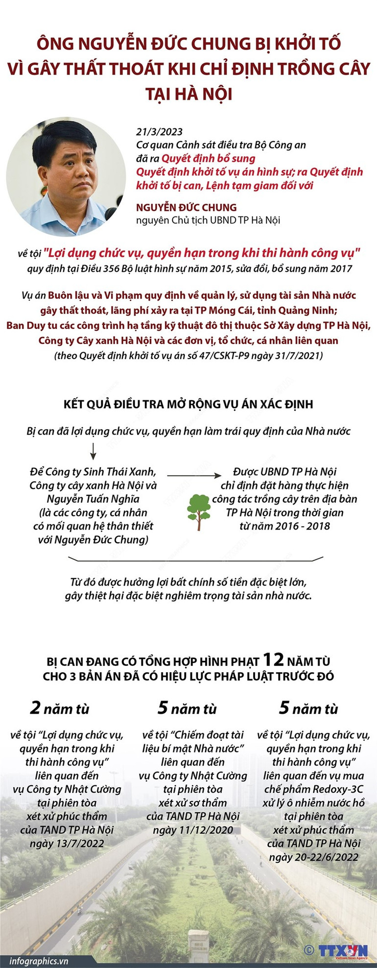 Đồng thời, ra quyết định khởi tố bị can, lệnh tạm giam đối với Nguyễn Đức Chung, nguyên Chủ tịch Ủy ban Nhân dân thành phố Hà Nội, về tội danh trên.