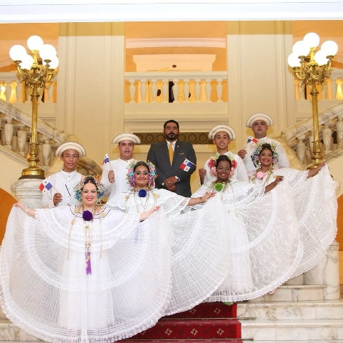 Đại sứ cùng các nghệ sĩ múa dân gian Panama.