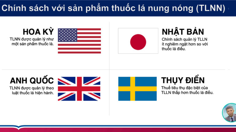PGS Toàn cho biết, hiện nhiều nước thành viên của Tổ chức Y tế Thế giới (WHO) đều quản lý thuốc lá mới theo luật hiện hành. Ở một số quốc gia, luật quản lý các sản phẩm thuốc lá mới có phần nới lỏng hơn thuốc lá điếu nhằm khuyến khích chuyển đổi. Điển hình, tại Thụy Điển, thuế thuốc lá làm nóng chỉ bằng 36% thuốc lá điếu thông thường. Đây cũng là quốc gia gần đạt mục tiêu không khói thuốc, tức giảm tỷ lệ người hút thuốc lá xuống 5%.