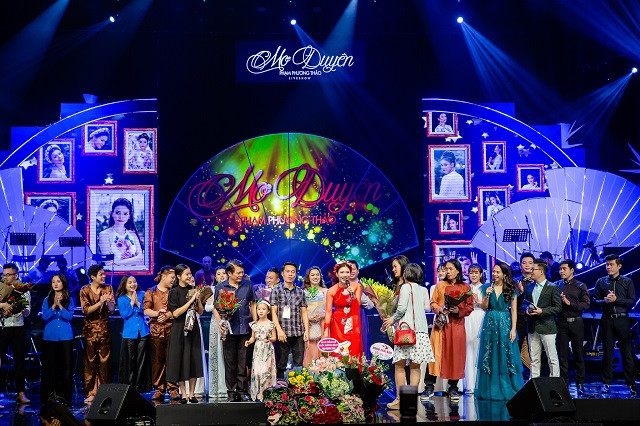 Phương Thảo hạnh phúc trong vòng tay gia đình và đồng nghiệp trong liveshow kỷ niệm 20 năm ca hát của mình.