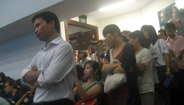 Độc giả đứng chật kín cả lối đi của Hội trường.