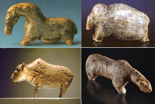 Một vài hiện vật làm từ ngà voi ma mút khai quật được từ hang Vogelherd.