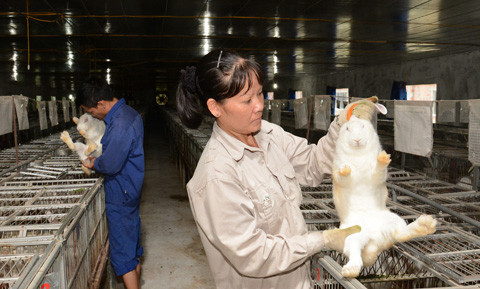 Trang trại nuôi thỏ tại xã Sơn Đồng (Sơn Tây, Hà Nội) được xây dựng kiên cố, khép kín và có hệ thống quạt thông gió. Ảnh: DUY LINH