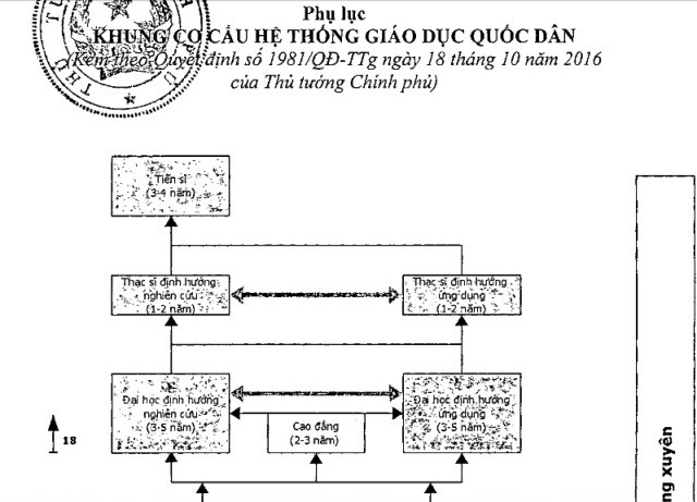 Theo Quyết định số 1981/QĐ-TTg được Thủ tướng Chính phủ phê duyệt, Khung cơ cấu hệ thống giáo dục quốc dân gồm giáo dục chính quy và giáo dục thường xuyên; là cơ sở để thực hiện đổi mới căn bản toàn diện giáo dục và đào tạo.