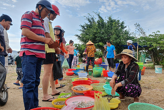 Thuyền cập bến, neo đậu chắc chắn. Những người đàn ông, đàn bà, có cả trẻ em bưng bê những khay, thau, rổ, chậu… đựng lưng, đầy các loại hải sản lên bày ra hàng ngang bên lề đường. Không cần vẫy tay, không cần mời gọi, những người đi tập thể dục ngang tạt vào, xe máy, ô-tô trên đường dừng lại.