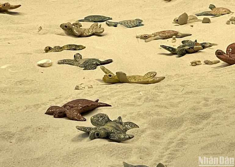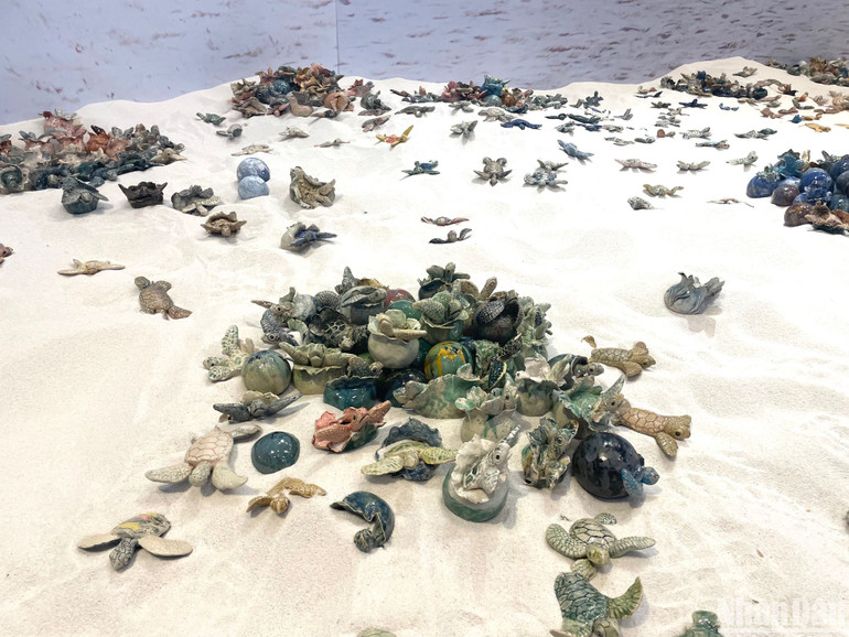 Bằng nghệ thuật tạo hình, mỗi con rùa biển trong triển lãm là một cá thể độc bản, riêng biệt, được nặn hoàn toàn bằng tay, mang hình dáng, màu sắc, biểu cảm khác biệt.